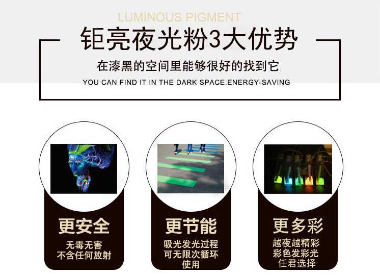 頂凡生產(chǎn)的夜光粉均采用共沉淀工藝制得,無需球磨,并通過表面改性使得粉體具有粒度細(xì)、亮度高、分散性好、添加量小的特點(diǎn),大大降低了使用成本,發(fā)光時(shí)間比普通型夜光粉多10倍以上,耐候性好,戶內(nèi)、戶外都可使用。電話:020-29862888、13378693789