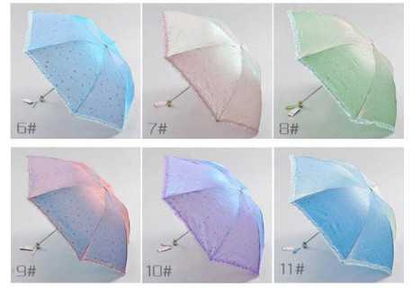 很多雨傘廠家為了產品的銷量,生產出遇水變色雨傘和感光變色雨傘,而感光變色雨傘就是采用頂凡光變粉制成的,頂凡光變粉所制成的產品在無紫外光源的環境下為無色(或該產品本色),在有紫外光源的環境下為變色,產品的設計大多以室內(無紫外光環境)與室外(有紫外光環境)有顏色變化為需求。