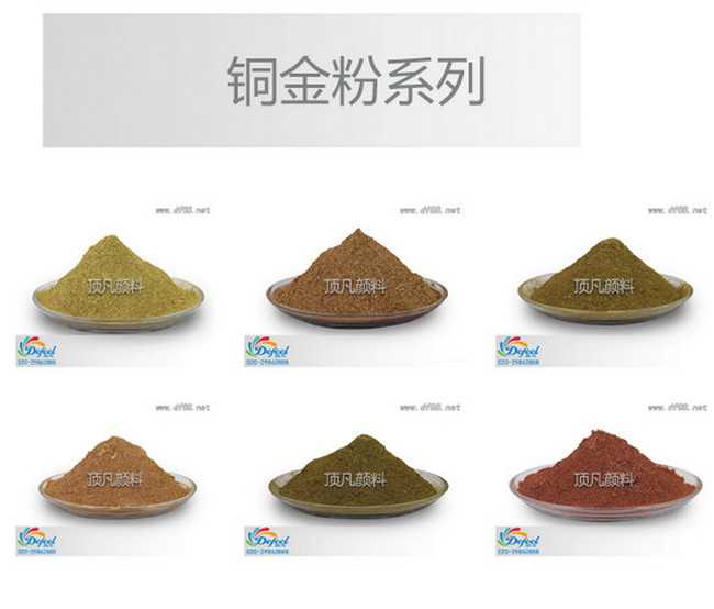 頂凡銅金粉的色相可分為青金、紅金、古銅金等。帶有氧化硅包覆膜的顏料,顆粒較粗的顏料則能達到燦爛的閃亮效果,顆粒較細的顏料會產生絲光的柔和色調。